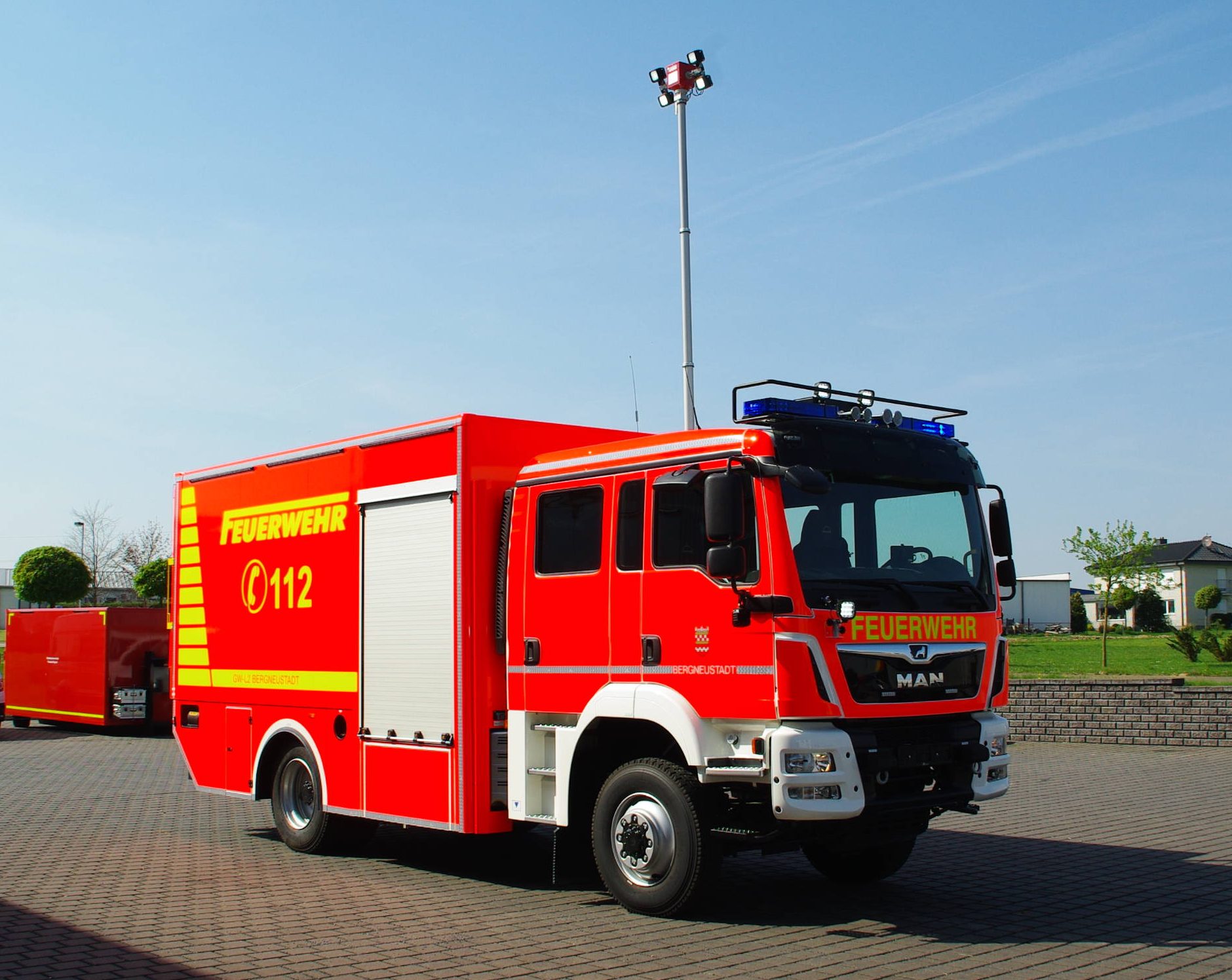 Gerätewagen Logistik 2 für die Feuerwehr Bergneustadt Kunde: Feuerwehr Bergneustadt Fahrzeugtyp: GW-L2 Fahrzeugbasis: MAN TGM 13.290 4 x 4 BL Staffelkabine Beschreibung: Gerätewagen Logistik 2 für die Feuerwehr Bergneustadt Technische Daten: zulässiges Gesamtgewicht: 15.000 kg Fahrzeugabmessungen: 8.300 / 2.550 / 3.400