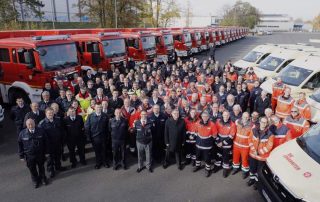 Am 03.11.2018 wurden auf dem Düsseldorfer Messegelände insgesamt 25 Betreuungskombi 2.0 und Dekon P bzw. GW-L2 an die Feuerwehren und Hilfsorganisationen durch den nordreinwestfählischen Innenminister Herbert Reul offiziell bergeben. Insgesamt waren 150 Vertreter und Vertreterinnen der Feuerwehren und Hilfsorganisationen vor Ort. Nach der Begrüßung und Ansprache von Herbert Reul hat dieser symbolisch den Fahrzeugschlüssel überreicht.